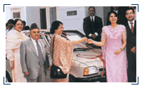 Miss Hina Ali receiving the key of new Suzuki Car, from the Chief Guest Fedral Law Minister Barrister Shahida Jamil in 1998. |